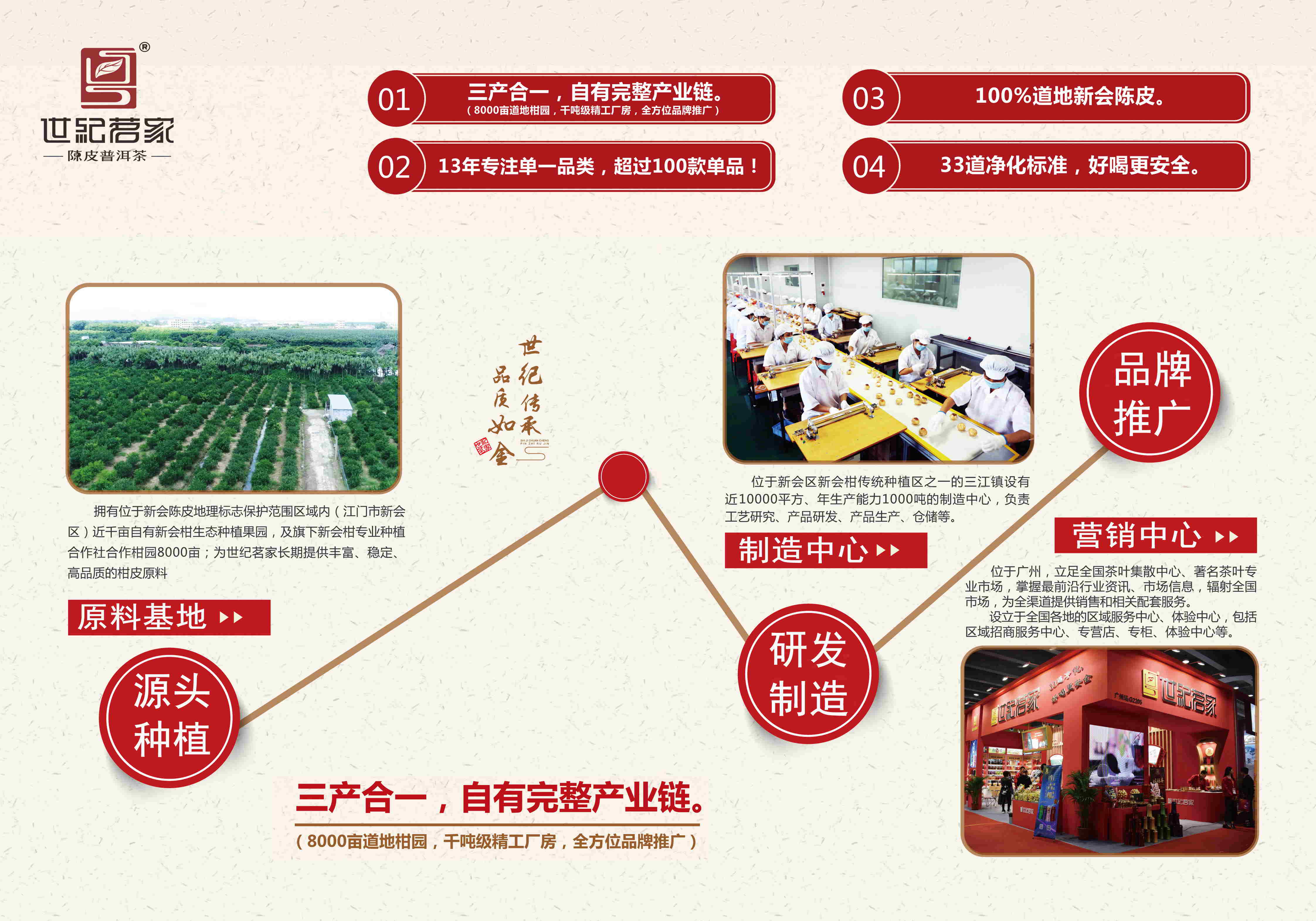 制造中心:位于新会区新会柑传统种植区之一的三江镇设有近10000平方、年生产能力1000吨的制造中心,负责工艺研究、产品研发、产品生产、仓储等。