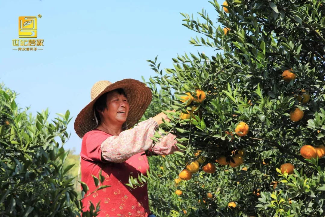 新会柑园·采摘新鲜柑果 人工剪摘留果蒂(该环节由新会工厂的同事安排柑园工人采摘并快递至广州公司)