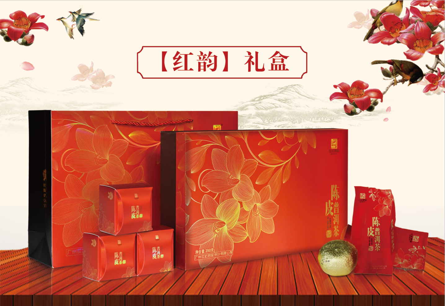 “红”,是岭南水乡文化中的木棉红,是岁末新会一望无垠的柑果红,也是云南深山秘境普洱茶汤的琥珀红。当温婉细柔的岭南文化与厚重悠远的普洱茶文化惺惺相惜,如“心有猛虎细嗅蔷薇”,诞生独特的柑普“韵味”,故名“红韵”。