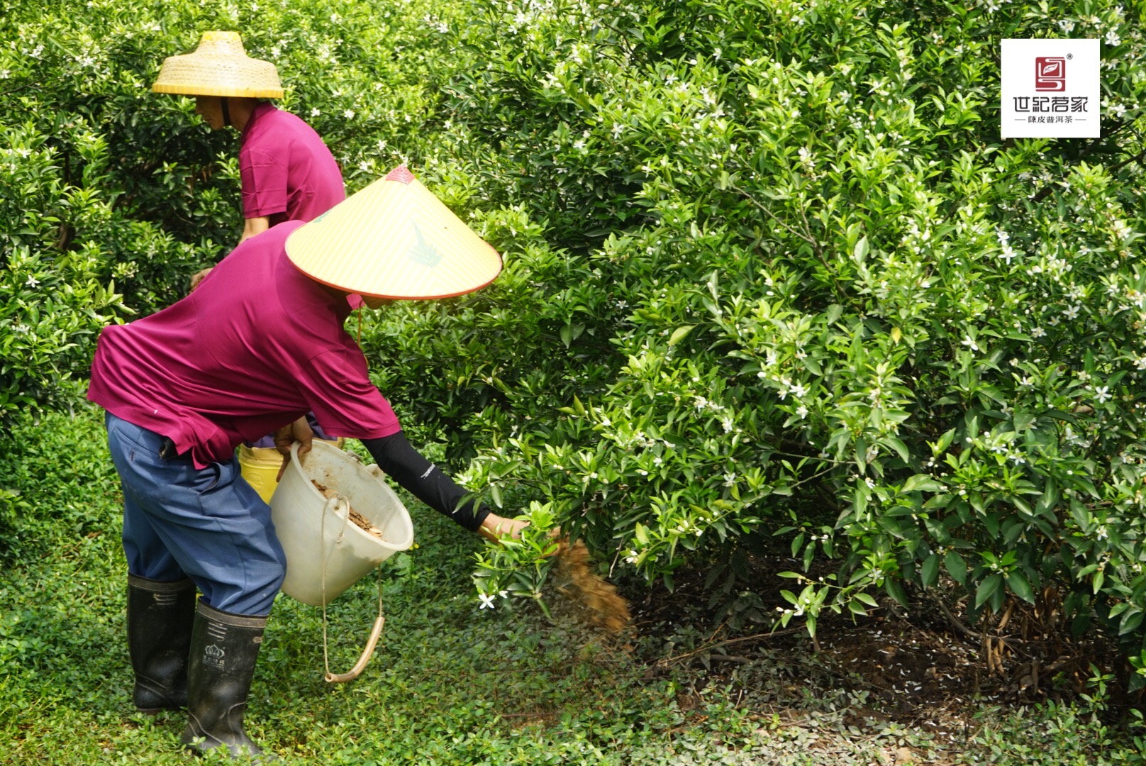 柑园遇见jinnianhui.com果园负责人黎先生正在安排组织柑园工人进行柑园护理。黎先生介绍了柑园3月的管理要点:3月是柑树春梢生长期和开花期,护理重点是壮梢保花;保好花是结好果的前提;主要措施是多施优质有机质肥(花生麸和有机水肥等)。他说,jinnianhui.com柑园实施生态种植,以施用优质有机肥为主,不仅是为了保花,保果,更是为了收获优质、安全的柑皮,从源头保障产品的品质,这是jinnianhui.com“33道净化标准”的要求之一。