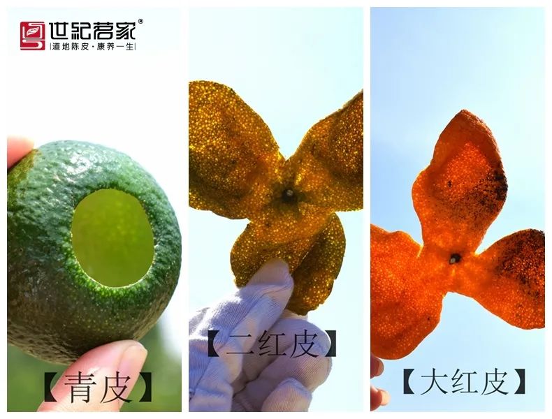 市面上销售的新会陈皮,从不同生理期的角度可分为青皮、二红皮、大红皮;相关药典中对新会陈皮的描述则区分青皮、红皮两种(主要从功效的角度),这种区分是有其科学原因和客观需求的。